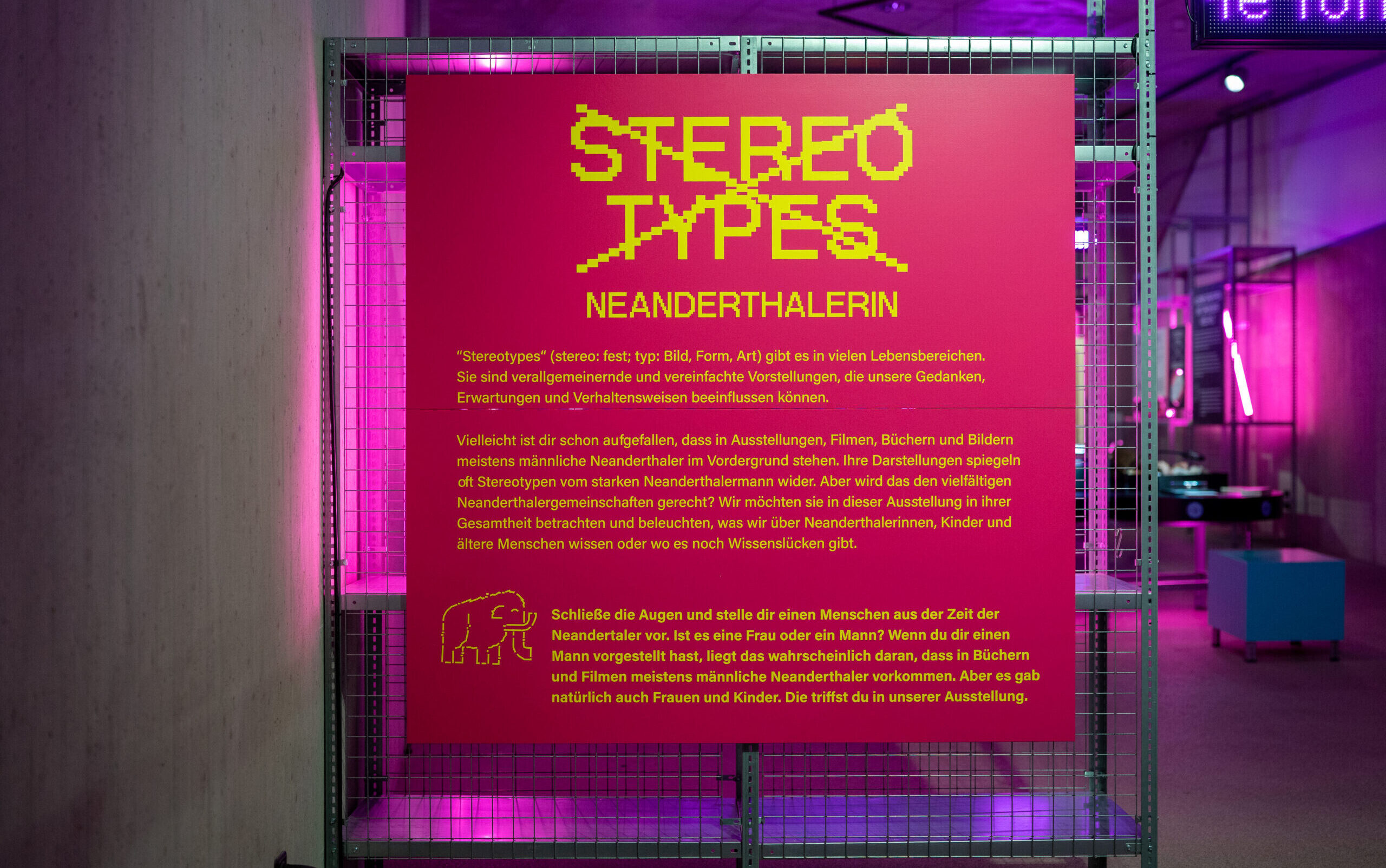 Die Ausstellung Stereotypes Neandertalerin betrachtet Neandertaler:innen in ihrer Gesamtheit und beleuchtet, was wir über Neanderthalerinnen, Kinder und ältere Menschen wissen oder wo es noch Wissenslücken gibt.